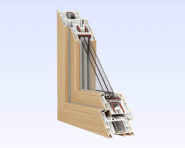 Nowoczesne okna z pakietem trzyszybowym (do 48 mm), wielokomorowym profilem i potrójnym systemem uszczelnień.