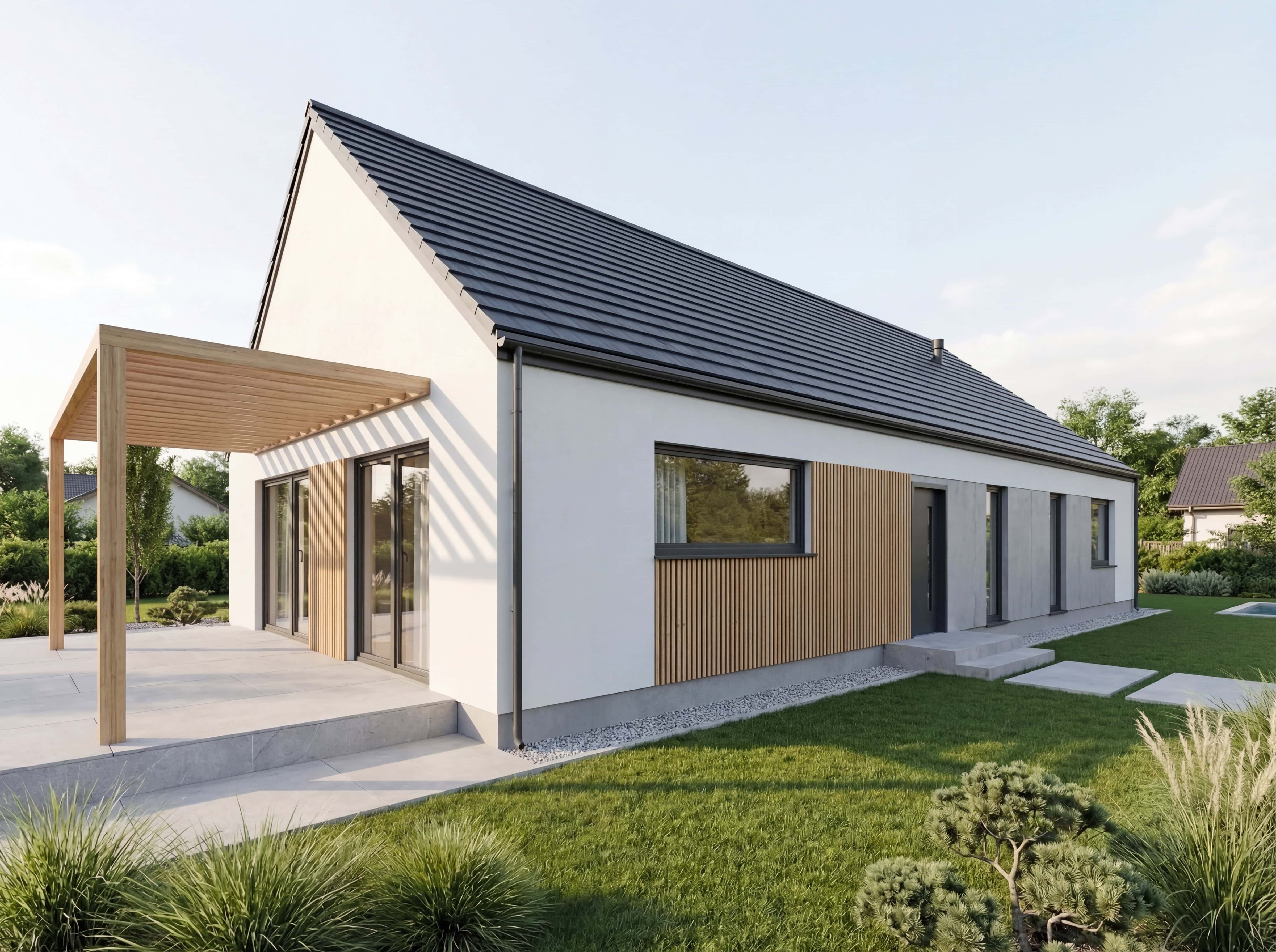 Elewacje podkreślają charakter naszych domów prefabrykowanych i chronią ściany przez długie lata.