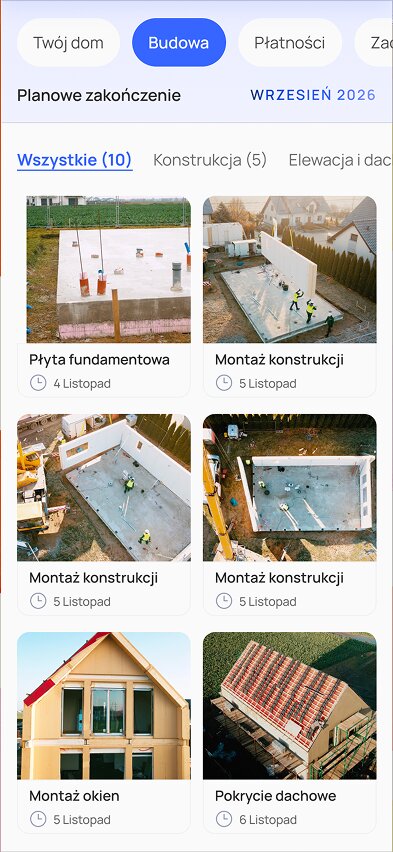 Panel klienta to system online, w którym możesz na bieżąco śledzić postępy budowy swojego domu prefabrykowanego.